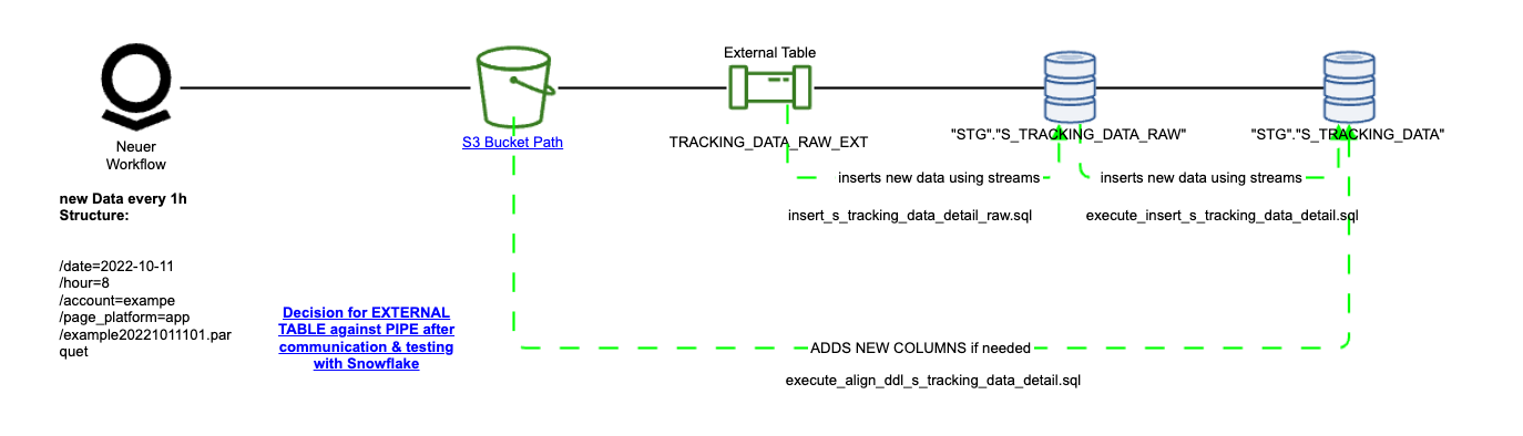 Damit das Ganze möglichst effizient geschieht, wäre es wichtig, vom Warehouse Size (über External Table) gebrauch zu machen, als auch nur die hinzugekommen Daten zu laden (über Streams)